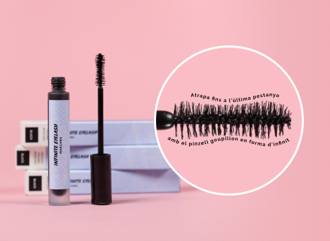 La Infinite Eyelash Mascara compta amb una revolucionària formulació a base d'actius naturals que fusionen la cura de les pestanyes i el maquillatge, aportant un valor real al teu organisme alhora que un resultat que t'enamorarà.