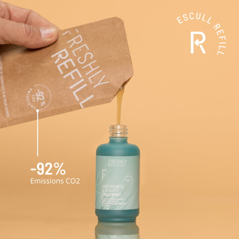 Si penses que el futur del món passa per la producció sostenible, això és per a tu. La teva elecció responsable, la innovació i l'amor per la ciència i el planeta combinats han aconseguit aquest envàs de refill. Amb això reduïm en un 92% les emissions de CO2 sense sortir de casa. Perquè adoptar hàbits sostenibles hauria de ser fàcil, Freshly Refill!