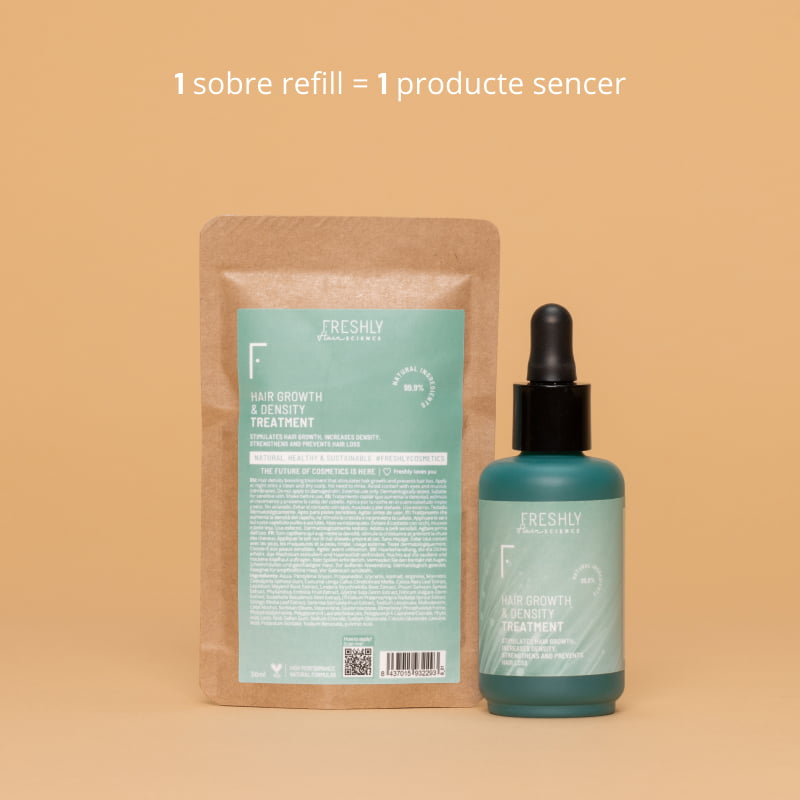 "Aquest envàs de Refill està fet de +75% de fibra vegetal, i sense alumini, així que per a reciclar-ho, porta-ho al contenidor blau"
