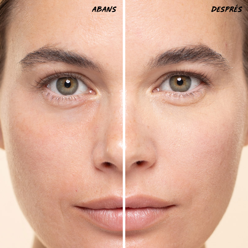 Aquest corrector de maquillatge incorpora més d'un 99% d'ingredients naturals per a cobrir ulleres, taques i enrogiment. És un multiusos per a la teva rutina diària perquè difumina, corregeix i proporciona una cobertura mitjana-completa de llarga durada aportant suavitat i fermesa a la pell amb acabat mat. La seva fórmula no comedògena conté ingredients d'origen natural, com l’oli de crambe, per a hidratar el rostre en profunditat i protegir-lo eficaçment contra agents externs, mentre l’àcid hialurònic vegà atenua les línies d'expressió i els millors pigments naturals d'alta qualitat.
