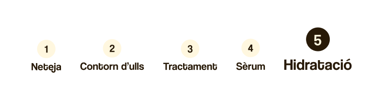 Reparteix unes gotetes del producte per tota la cara i realitza un suau massatge, sempre de dins cap a fora fins que notis que el producte s'ha absorbit completament.