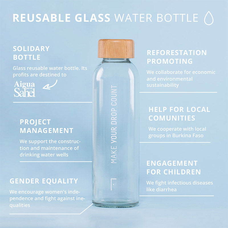 Die wiederverwendbare Glaswasserflasche ist die Glasflasche die von Freshly Cosmetics.