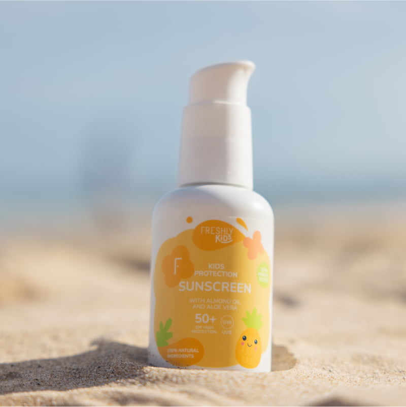 Our Kids Protection Sun Cream contains only natural sun filters such as Zinc Oxide and Titanium Dioxide to protect from UVA and UVB rays with SPF 50+