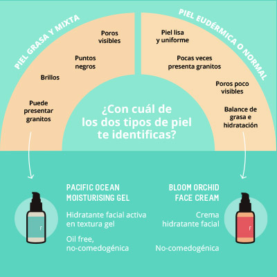Es un producto apto para todo tipo de pieles, pero si tu piel es seca o normal te recomendaríamos que utilizaras la Bloom Orchid Face Cream en su lugar, ya que está formulada segun las necesidades de este tipo de pieles. Aún así, si prefirieses la textura en gel del Pacific, ¡no habría inconveniente en que lo usaras!