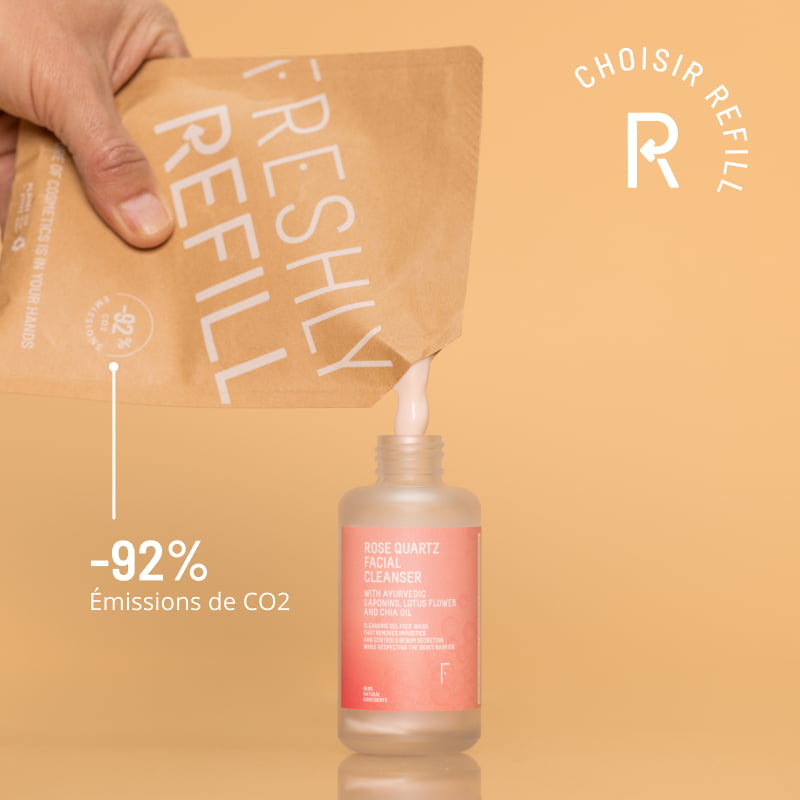 Vous aussi vous croyez en un avenir meilleur ? Vous pouvez désormais recharger à l'infini depuis chez vous. Comment ? Grâce à cette recharge, une nouvelle innovation Freshly faite avec amour. En plus de contenir votre produit, elle génère 92% d'émissions de CO2 en moins et est 100 % recyclable. Parce qu'adopter des habitudes responsables devrait être facile. Rechargez, réutilisez, refill !