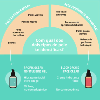 É um produto adequado a todos os tipos de pele, mas se tiveres a pele seca ou normal recomendamos que uses antes o Bloom Orchid Face Cream, que foi formulado especificamente para as necessidades deste tipo de pele. Ainda assim, se preferires a textura em gel do Pacific, não há qualquer inconveniente em usá-lo!